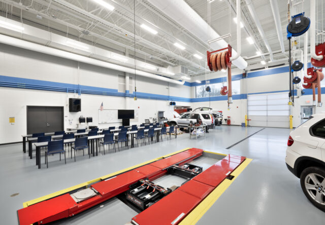 This forward-thinking project is designed to enhance hands-on learning and provide cutting-edge resources for students. The 14,000-square-foot expansion on the northwest side of the building is specifically designed to house the advanced construction and automotive programs while providing room for other programs to grow. By integrating cutting-edge facilities and versatile spaces, this renovation project highlights Carmel High School’s commitment to empowering students through hands-on, experiential learning.